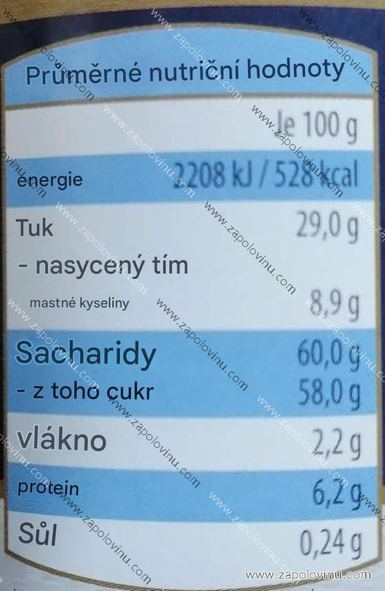 SLOŽENÍ: Cukr, pistáciová pasta 20 %, palmový olej, sušená sladká syrovátka, sušené odstředěné mléko, laktóza, palmový tuk, přepuštěné máslo, emulgátor: lecitiny (sója), sůl, aromata, barviva: měďnaté komplexy chlorofylu a chlorofylinů, kurkumin.