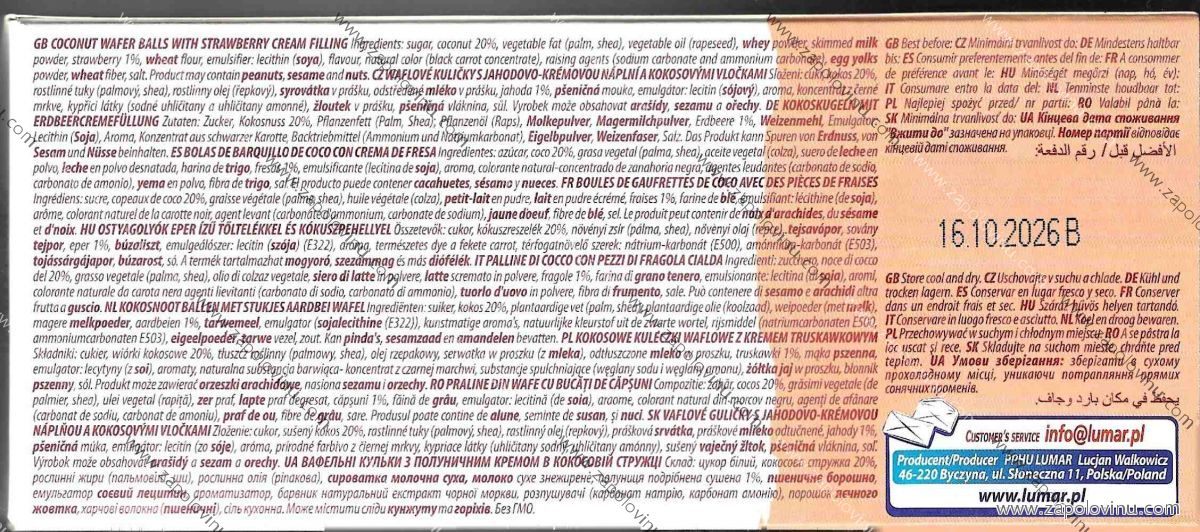 Lumar Lumarki vaflové bonbóny s kokosovým a jahodovým krémem 120g
