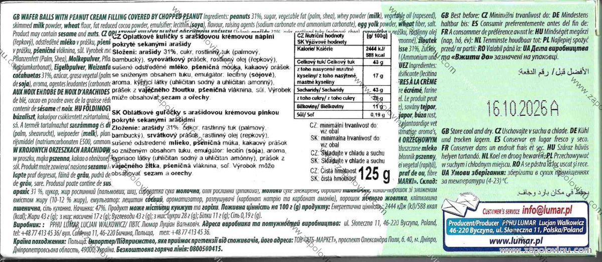 Lumar Lumarki vaflové bonbóny s kakaovým krémem a lískovými oříšky120g