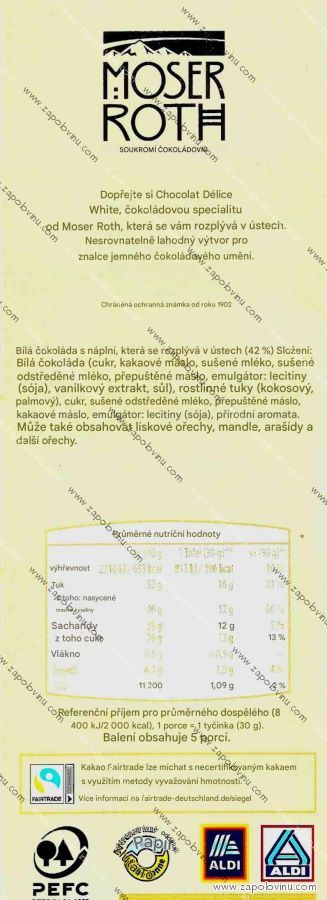 Dopřejte si Chocolat Délice White, čokoládovou specialitu od Moser Roth, která se vám rozplývá v ústech. Nesrovnatelně lahodný výtvor pro znalce jemného čokoládového umění.