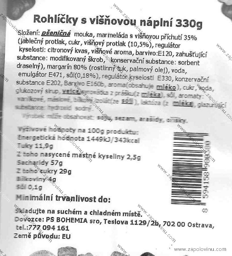 PSB rohlíčky s višňovou náplní 330g