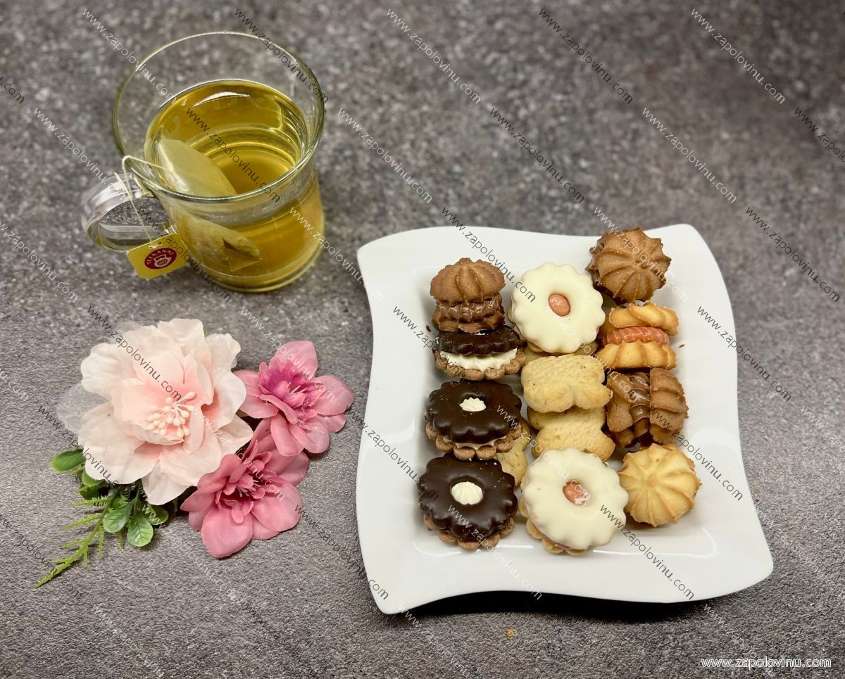 MOUKA PŠENIČNÁ, rostlinné oleje (palmový, řepkový), voda, emulgátor E471, sůl, regulátor kyselosti: kyselina citrónová, konzervanty E202, máslové aroma, barvivo annato (E160b), ovocná náplň (směs ovocných dření, cukr, kyselina citrónová, želírující látka pektin, konzervant sorban draselný, přírodní barvivo E160c, aroma), cukr, kakao, Cukrářská poleva tmavá (cukr, rostlinný tuk (palmojádrový olej) kakao, emulgátory: SÓJOVÝ LECITIN, E476, aroma, barvivo E153, může obsahovat stopy MLÉČNÝCH produktů). Cukrářská poleva světlá (cukr, rostlinný tuk (palmový) SUŠENÉ MLÉKO, SUŠENÁ SYROVÁTKA, emulgátory: SÓJOVÝ LECITIN, kyselina citrónová, sůl, aroma. Lískooříšková náplň (cukr, rostlinný tuk (palmový), SUŠENÁ SYROVÁTKA, kakao, SÓJOVÝ LECITIN, LÍSKOOŘÍŠKOVÁ pasta, aroma, sůl. Nusanté s příchutí vaječného likéru (cukr, neztužený rostlinný tuk (palmový shea olej), SYROVÁTKA, emulgátor SÓJOVÝ LECITIN, aromata, barvivo: betakaroten, sůl), LÍSKOVÉ OŘECHY