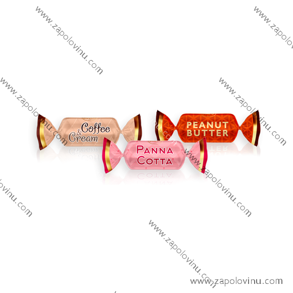 - Směs tří bonbonů: příchuť dezert panna cotta, příchuť káva & smetana a příchuť arašídového másla