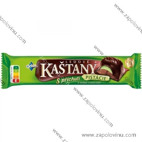 Hořká čokoláda s náplní s příchutí pistácii a kakaovooříškovou náplní.